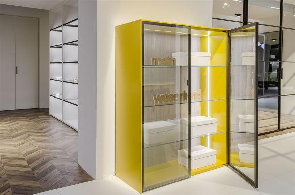 Die Drehtür fügt sich harmonisch in unser vielfältiges Türportfolio ein. Wie bei Schiebe- oder Falttüren können Sie Profilform, Farbe und Füllung individuell aus unserem Drehtürprogramm wählen – so entsteht Ihre persönliche Wunsch-Drehtür nach Maß. Besonders praktisch: Mit der raumplus Alurahmendrehtür RPE planen Sie sogar Schränke bis 3 m Höhe problemlos.