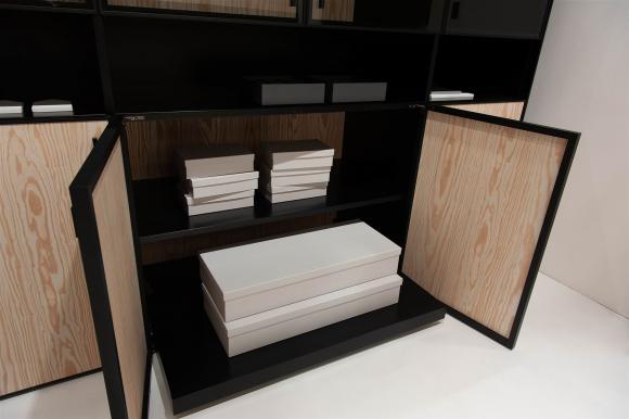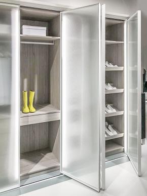 Drehtüren lassen sich vollständig öffnen und geben den gesamten Stauraum frei. So wird die Schrankinnenfläche optimal genutzt, ohne Platz zu verschenken. Alles ist übersichtlich angeordnet und jederzeit griffbereit.