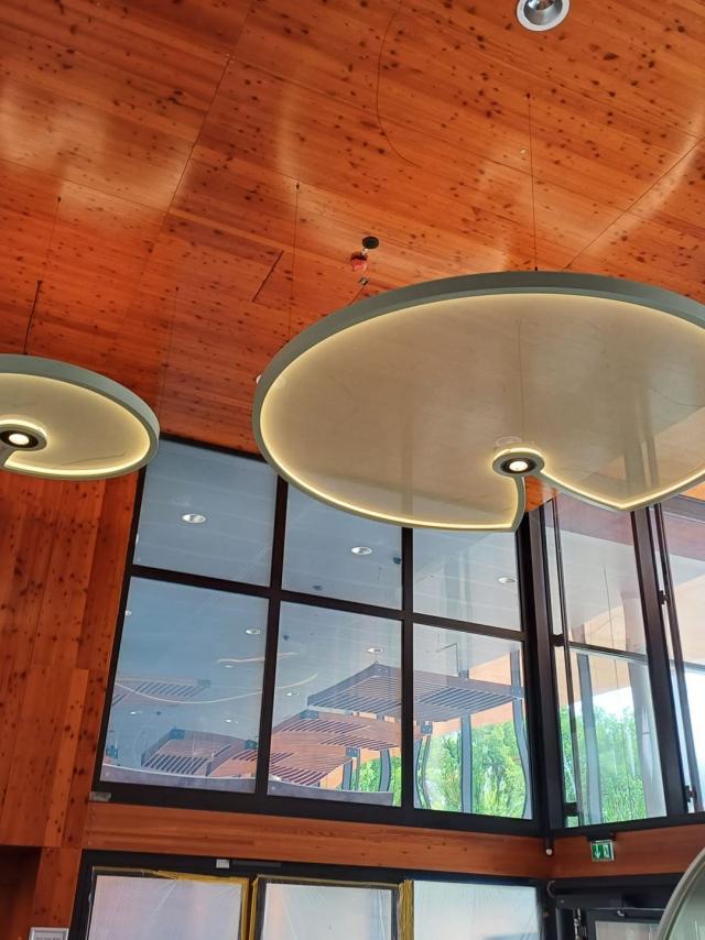 Für das Müritzeum in Waren (Müritz) haben wir Deckensegel in Seerosenform (Seerosenlampen), je 2,90 m, 2,20 m und 1,37 m Durchmesser gefertigt und angebracht.